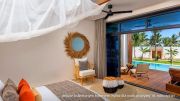 A 70 m²-es lakosztály közvetlenül az óceánparton található, saját terasszal és közvetlen medencekapcsolattal. King size ággyal, kültéri zuhannyal és kényelmes ülősarokkal rendelkezik, lenyűgöző tengerre néző kilátással.