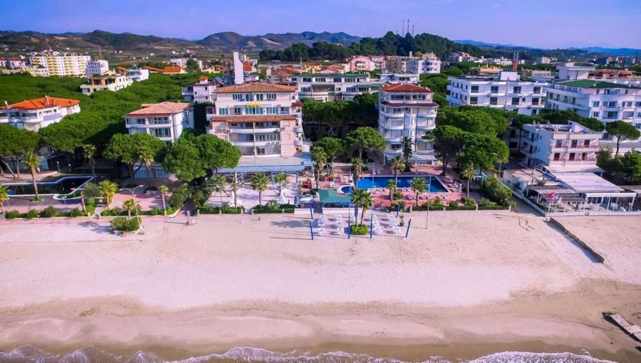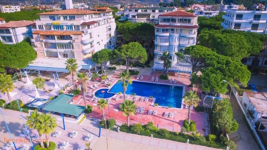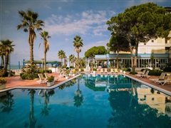 A 4*+ kategóriájú, színvonalas tengerparti hotel több épületből áll, melyek mind azonos minőségűek. A szálloda recepcióval, étteremmel, bárokkal, ingyenes Wi-fi-vel a közös helyiségekben, valamint kerttel és medencével rendelkezik. A medence mellett a napozóágyak és napernyők a vendégek számára ingyenesen állnak rendelkezésre.